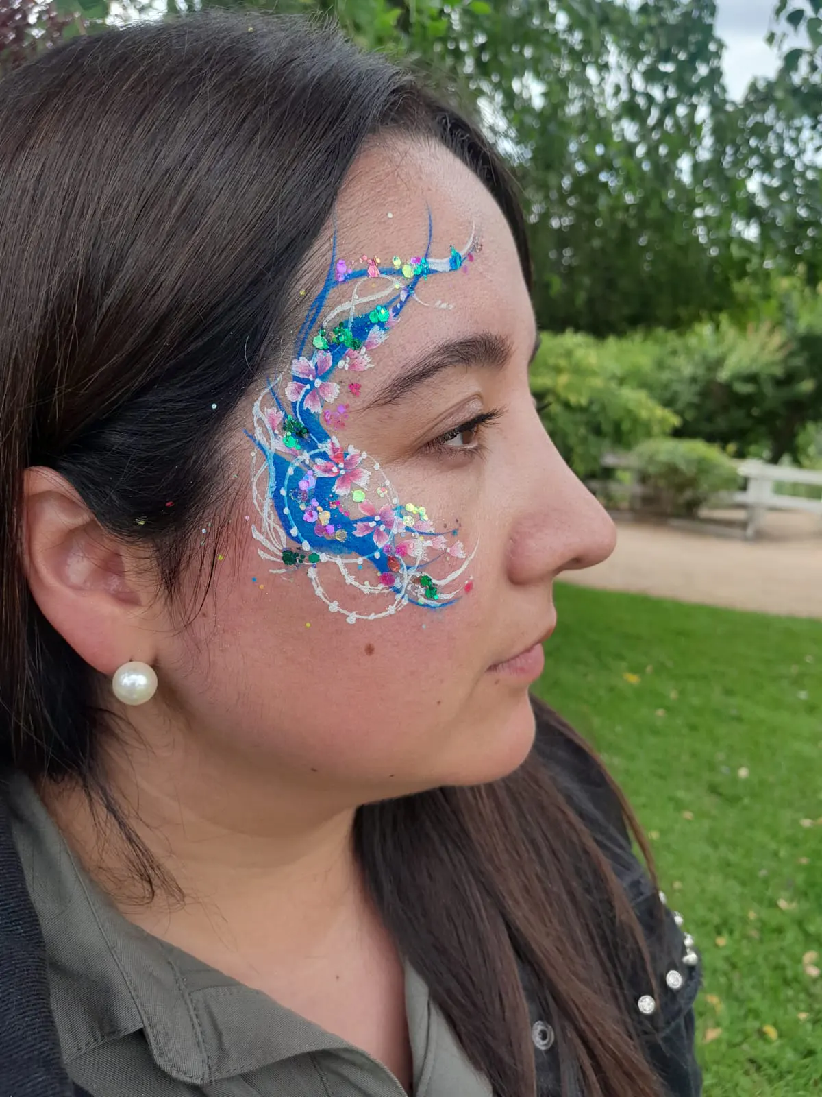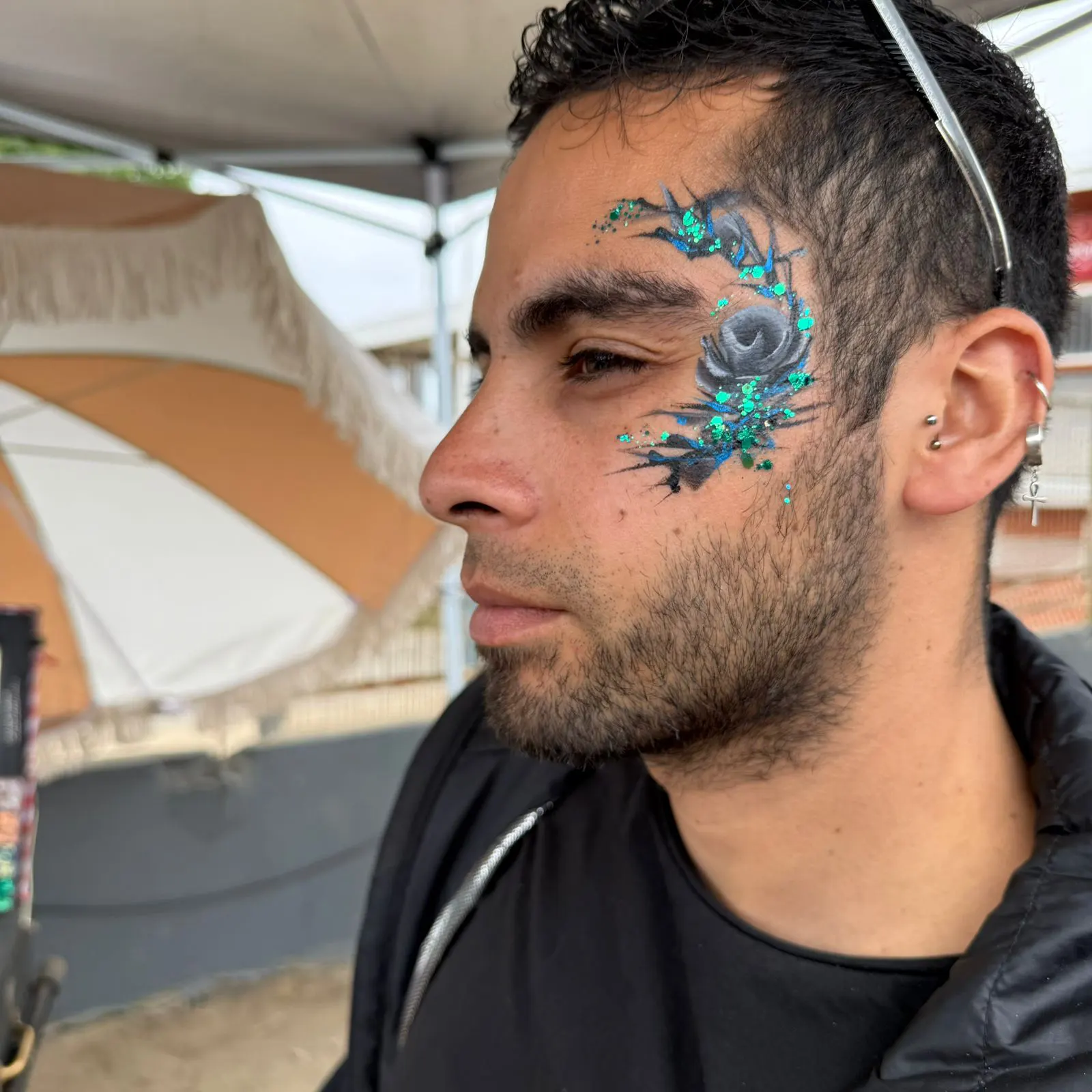 Aplicación de glitter cosmético, strass y detalles artísticos para todas las edades.