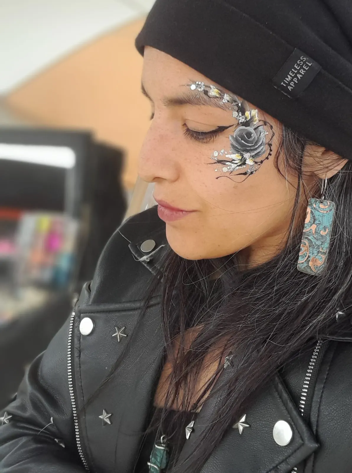 Estación de Maquillaje y brillos para eventos sociales, fiestas, festivales y activaciones de marca.